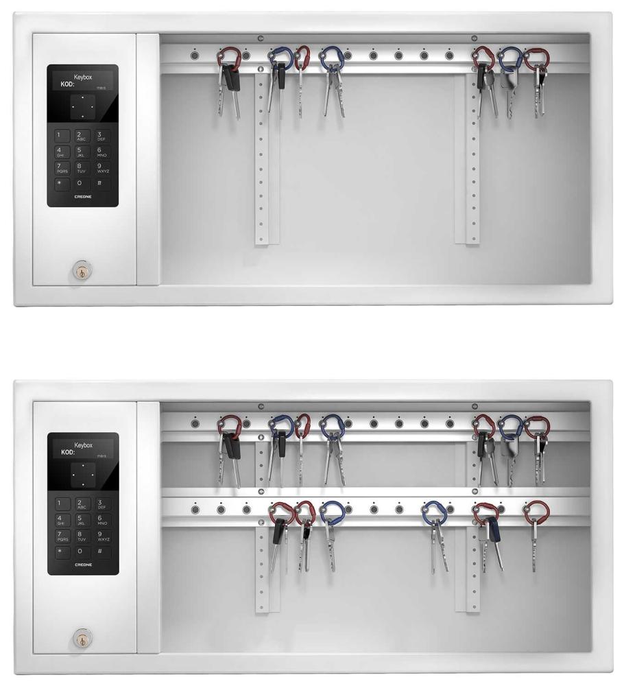 De sleutelkasten zijn verkrijgbaar in verschillende modellen met maximaal 42, 84, 210, 224 respectievelijk 924 sleutels in elke kast.