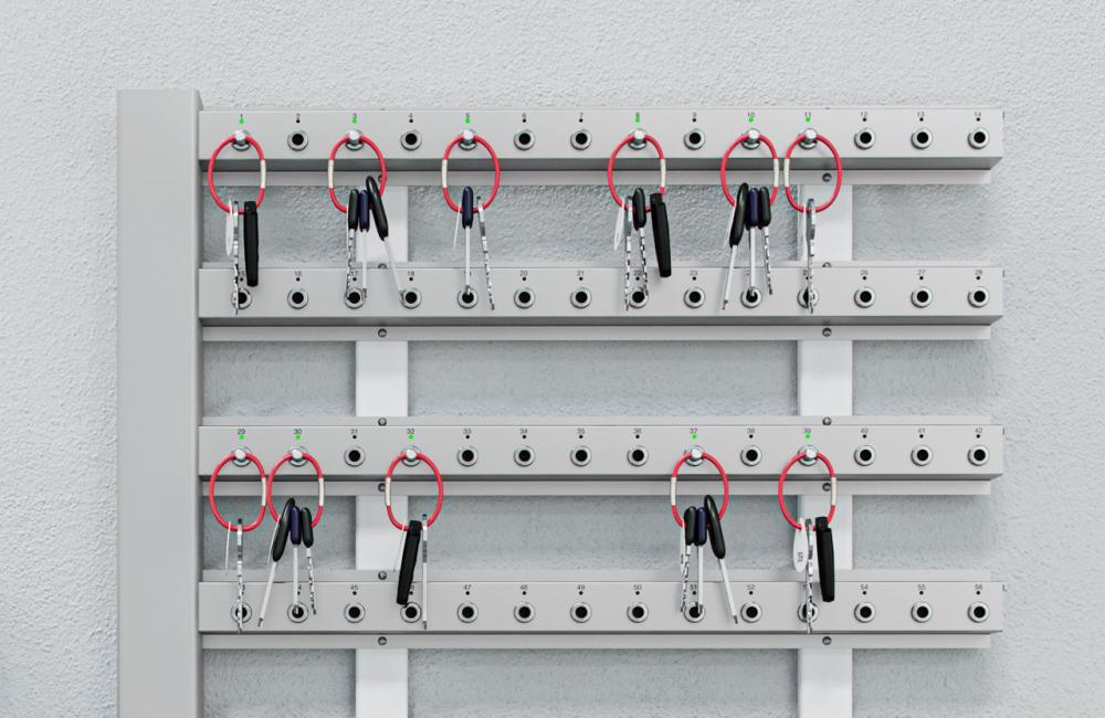 Met een KeyRack sleutellijst rechtstreeks aan de muur hebt u gegarandeerd overzicht en snelle toegang tot elke afzonderlijke sleutel. U combineert vrij vergrendelbare/niet-vergrendelbare lijsten en u kunt het systeem gemakkelijk uitbreiden indien nodig.