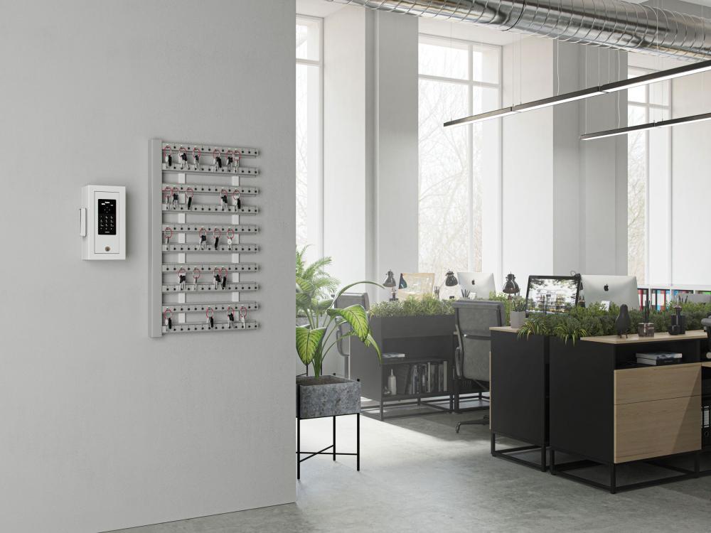 Koppel uw sleutels met de IntelliPin-sleutelhanger en plaats ze in de vergrendelbare/niet-vergrendelbare sleutelstrips van het KeyRack-systeem rechtstreeks op de muur of in een kast. Een goed overzicht en de volledige controle over uw sleutels kan niet eenvoudiger. Met KeyRack kunt u uw intelligente sleutelopslag uitbreiden tot maximaal 66 strips met in totaal 924 unieke sleutelhaken per bedieningskast aangesloten op KeyWin. Maximaal overzicht direct op de muur of maximale zekerheid in een veiligheidskast – de keuze is aan u.