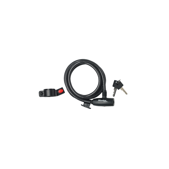 Zichzelf oprollende kabel met sleutel 1,8 m x Ø 10 mm met 2 sleutels vinyl coating - kleur: zwart - Inclusief draagbeugel