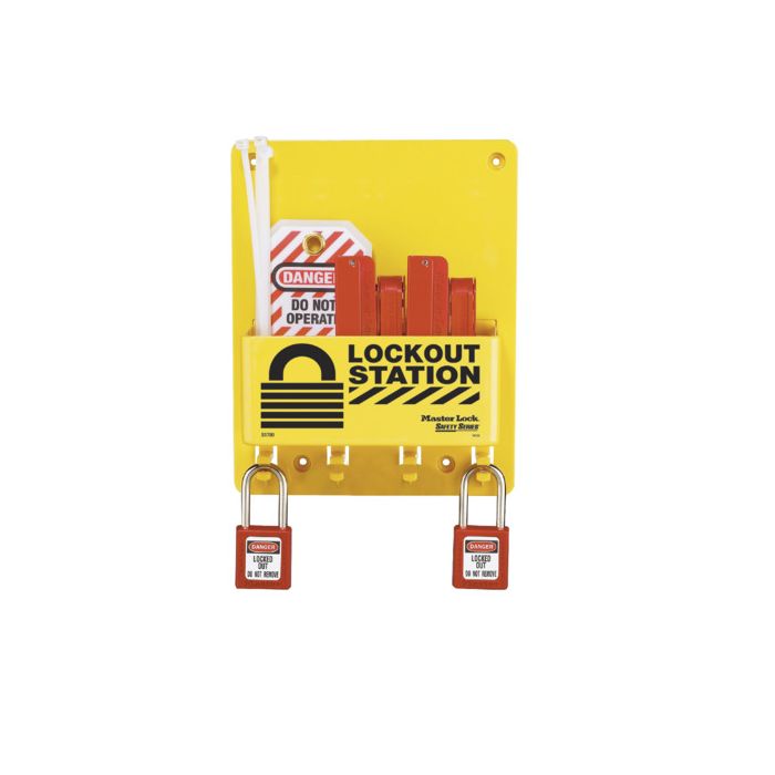 Lockout-station voor elektrische toepassingen - 2*493B / 2*491B / 4 labels 497A / 2*410Red