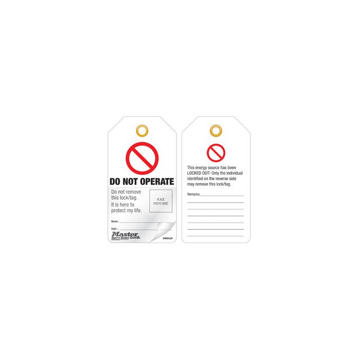 Zelflaminerende tag - Brits Engels - Gevaarlogo voor VK (pak met 12 tags)